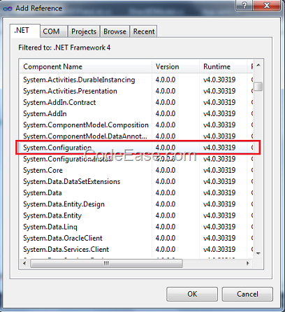 You have to add the reference manually, check MSDN here, we know we have to add the reference to System.Configuration.dll file.