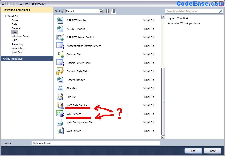 In Visual Studio 2010, when you try to add a WCF Service, you will see the following 2 kinds of WCF services: